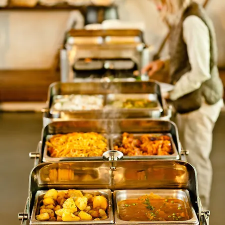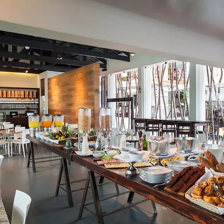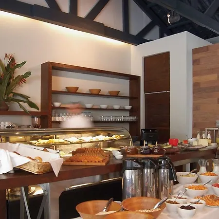Um café da manhã bufê consiste em batidos e waffles belgas servidos na cafeteria. Os hóspedes são convidados para o restaurante La Cafeteria para apreciar os pratos deliciosos.
